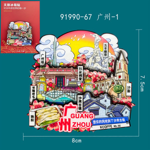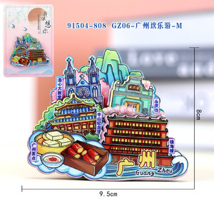 广州木质冰箱贴热门旅游城市打卡纪念品国潮文创旅游冰箱贴批发
