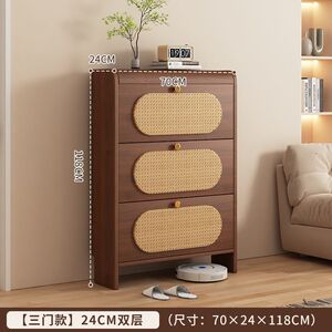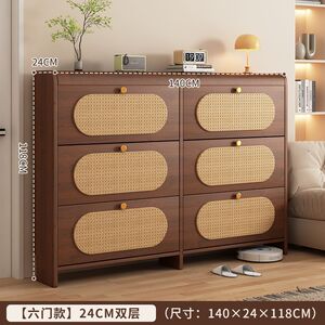 中古风超薄翻斗藤编鞋柜家用门口新款25爆款玄关柜一体实木色鞋架