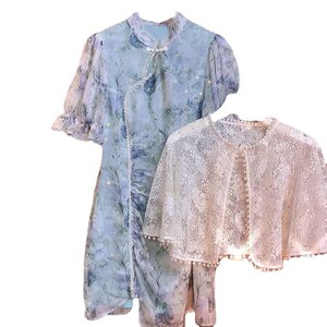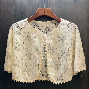 マント古代風ネットセレブチャイナドレスショール夏の女性のアウターウェアとスカート日焼け止めカーディガンレースショートトップ