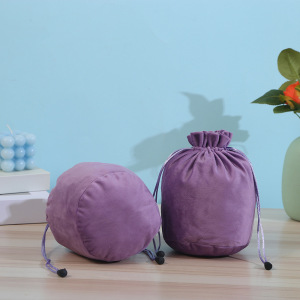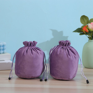ベルベット丸底巾着ポケット巾着ベルベットバッグヘッドフォン収納袋ベルベットパープル巾着ポケット