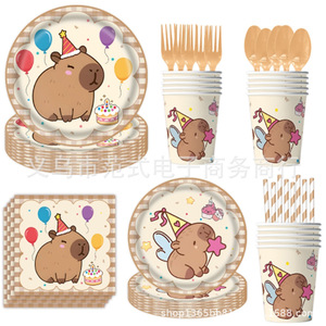 新しいカピバラテーマパーティー食器誕生日パーティーカピバラ使い捨て紙皿ティッシュディナープレートテーブルクロス