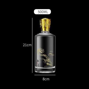 0.5kg個入りクリスタルホワイト素材高級如意白酒瓶空瓶使い捨て密封蓋付き厚手ガラス詰め替えギフトボックス