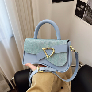 跨境外贸纯色包包女欧美风时尚软皮拼接单肩斜挎包百搭通勤小方包