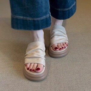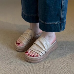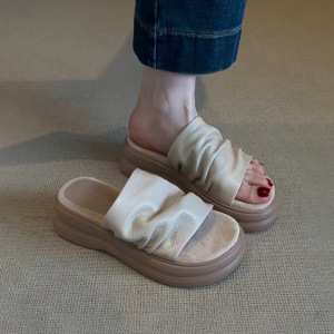 シープスキンバージョン~レトロプリーツオープントゥビーチサンダル2025新作多用途厚底快適で疲れにくい女性用サンダル