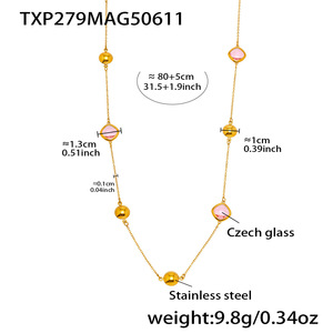 TXP279-ゴールドミックスガラスストーンネックレス 80+5cm