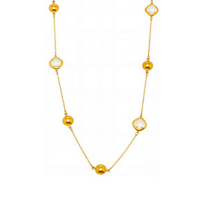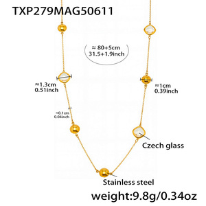 TXP279-ゴールドホワイトガラスストーンネックレス80+5cm