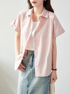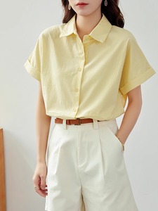 純綿の女性の半袖白シャツ女性のための 2025 新しい白シャツプロフェッショナル通勤女性の夏の半袖トップ