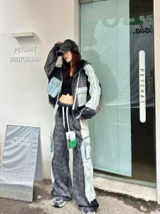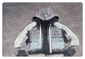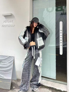 ヨーロッパジャケット女性のための 2025 秋の新スタイルヘビーデューティレタープリントスプライシングウォッシュデニムストリップフード付きジャケットトレンディ