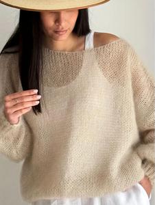 韓国東大門2025春秋カジュアル万能優しいスタイル薄手中空アウターニットブラウス