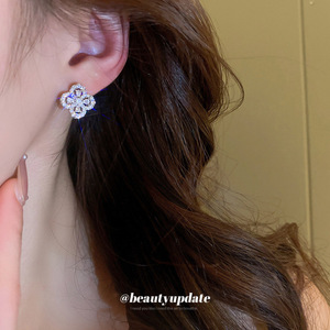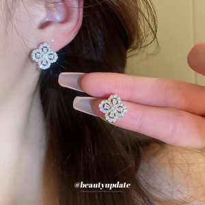スーパーフラッシュフルダイヤモンド幾何学スクエアイヤークリップ新しいライト高級ニッチデザインハイエンド人気イヤリング絶妙な女性のイヤリング