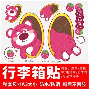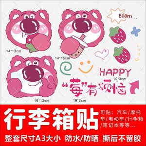 ストロベリーベア スーツケースステッカー 防水 接着剤残りなし 高級スーツケース ノートブック変身 特殊装飾ステッカー