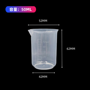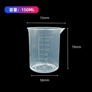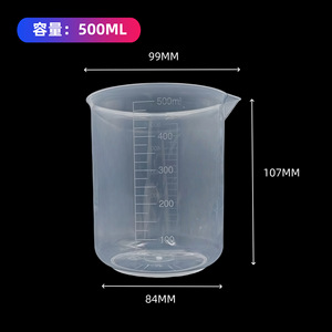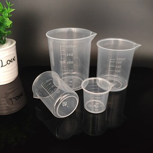 プラスチック製ビーカー、計量カップ、実験用目盛り付きカップ、透明計量カップ、目盛り付き、ハンドルなし、実験室専用