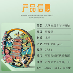 大同英仙木塔木製絵画窓冷蔵庫マグネット国民トレンドオリジナル文化創造冷蔵庫マグネット旅行お土産ギフト