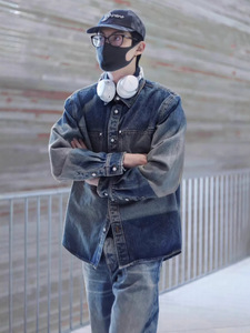 天花板品质25S潮牌新款V家日晒褪色牛仔外套明星同款工装牛仔外套
