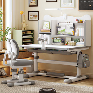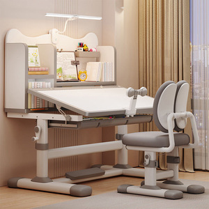 家庭用子供用学習机と椅子セット、ダイナミックなバックサポート、強力で安定した昇降可能な目の保護と座り姿勢を正す椅子