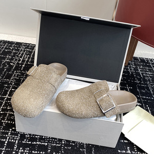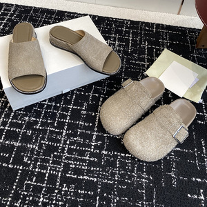 広州婦人靴/トップマッチング天井25春夏新作起毛ウェッジヒール厚底ビルケンシュトックスリッパ女性用