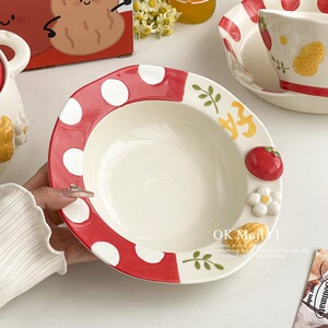 1人用の美しい朝食プレート、かわいい食器、絶妙なデザートプレート、麦わら帽子プレート、釉下色のセラミックフルーツサラダプレート