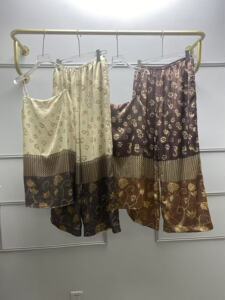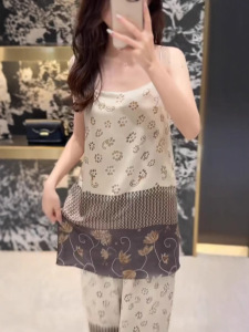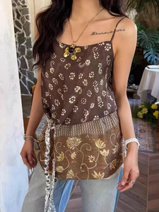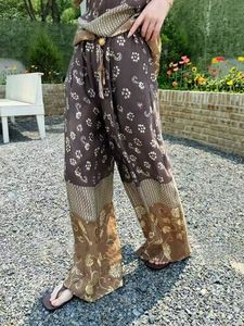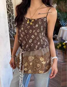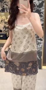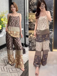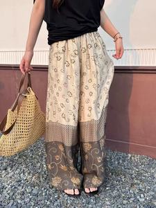 フレンチニッチ25夏新作レトロボヘミアンスタイルコントラストプリントルーズサスペンダーハイウエストパンツスーツ