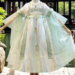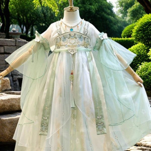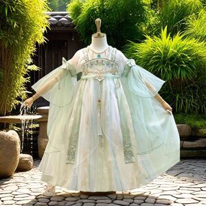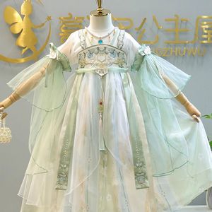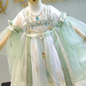 漢服夏の新しいスタイルの女の子のドレス子供のスカート古代衣装薄いスーツ改良された中国風の妖精のエレガントなスタイル