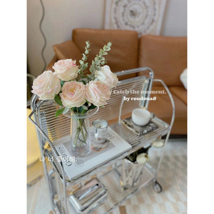 中古トロリー折りたたみ式モバイルガラストロリーインスタイルフラワースタンドダイニングカーネットレッド透明ガラス収納カート