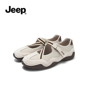 ジープジープフレンチメリージェーンシューズ女性のための 2025 新しいレトロカジュアル小さな革靴ノンスリップ浅い口フラットシューズ