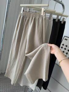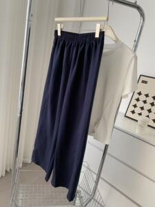 気質オールドマネースタイルテンセルリネンワイドレッグパンツ女性の夏薄いスリムストレートパンツカジュアルリヨセルクールパンツ