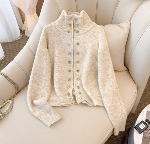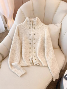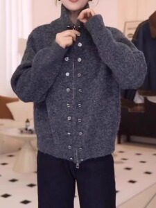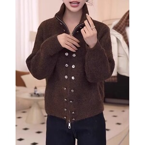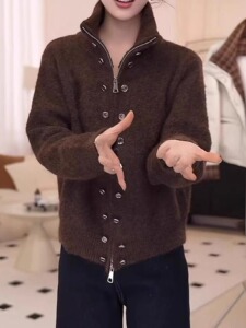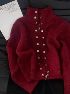 2025 ヨーロッパヘビーデューティーダブルブレストスタンドカラーレッドセータージャケット女性の秋と冬厚みのあるハイエンド怠惰なセーター