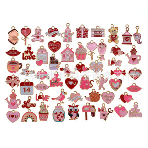 バレンタインデーピンクラブハートジュエリーアクセサリー diy ブレスレットキーホルダーネックレスペンダント合金オイルドリップペンダント