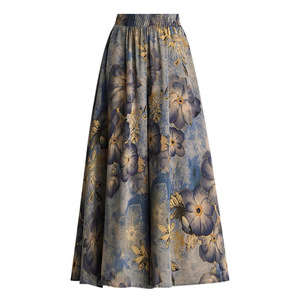 スカートパンツ大きいサイズカジュアルグループパンツハイウエスト痩身夏花柄ファッション万能プリント大裾9点スカートパンツ