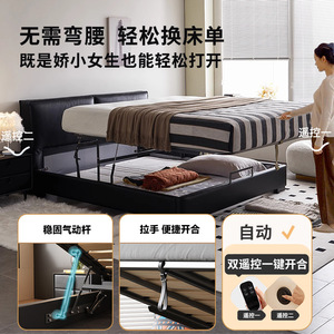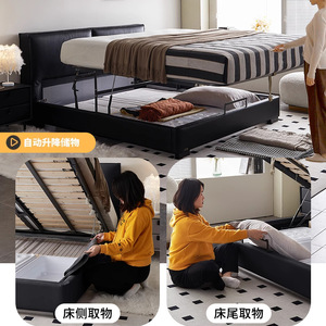 モダンでシンプルな豆腐ブロックブラックレザーベッド電動スライド多機能収納ベッドダブルソフトパッケージマスターベッドルームウェディングベッド