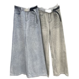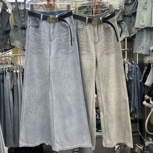 アメリカンレトロホットダイヤモンドワイドレッグジーンズ女性のための 2025 夏の新しいルーズストレートパンツスリムパンツ