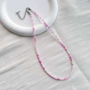 韓国版甘いドーパミンキビビーズネックレス鋼線ガーリースタイル虹色ガラスキビビーズネックレス