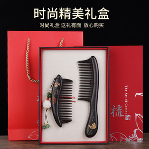 紫白檀魚座歯付き月櫛 + ボックスウッドフィッシュハンドル櫛ギフトボックススタイル