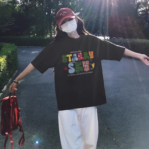 ピュアコットン半袖Tシャツレディース2025年夏新作ブラックルーズスリム半袖インナーレイヤリングシャツTシャツトップ