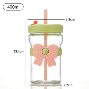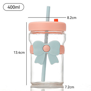 かわいいインリボンガラスストローカップ女の子のための見栄えの良いオフィスドリンクカップタンブラーギフトカップ