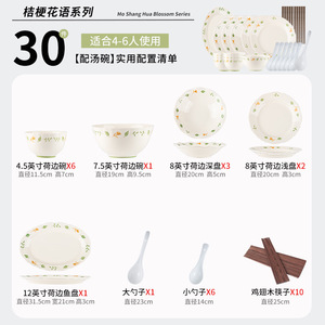 キキョウ 小さな新鮮なセラミック洋食プレート シンプルな食器 花柄 家庭用丼 平皿 魚皿 ラーメンボウルセット