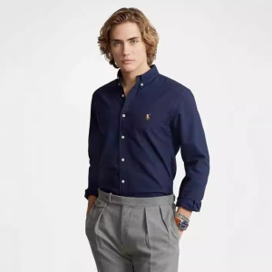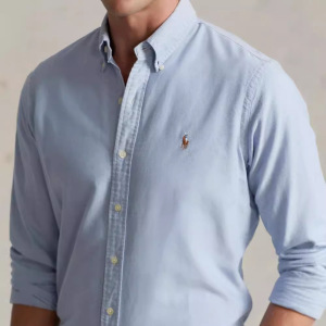 高品质RL拉夫可扫码男女同款小马标刺绣经典长袖牛津休闲衬衫男女
