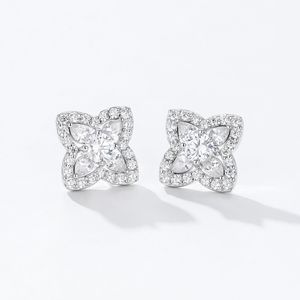ファッショナブルな S925 スターリングシルバーイヤリング、女性用イヤリング、軽い高級感、手作りのフルダイヤモンド四つ葉のクローバー、多用途ジュエリー、メーカー卸売
