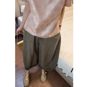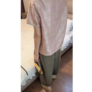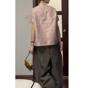 新しい中国風の女性の服 2025 夏の新しいスタイルの小さな美しいピンクのボタンシャツとパンツのツーピースのトレンディなセット