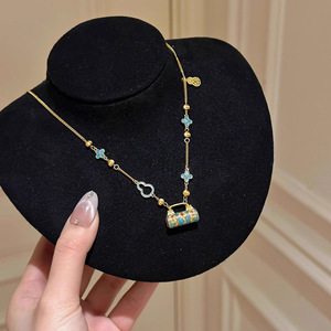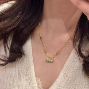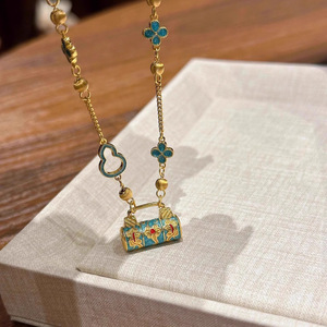 新しい中国風エナメルブルー安全ロックペンダントネックレスレトロコントラストカラー宮殿スタイル鎖骨チェーンハイエンドネックレスジュエリー