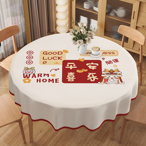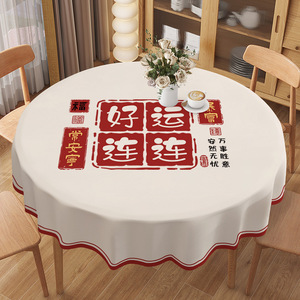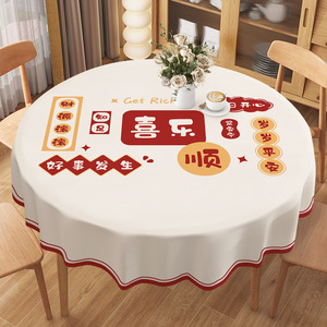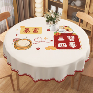 新年ラウンドテーブルテーブルクロス防水、耐油、火傷防止、洗濯不要の家庭用ラウンドテーブルマットインスタイルPVCラウンドテーブルクロステーブルクロス