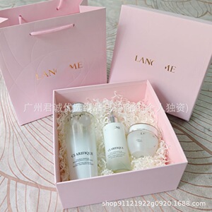 Lanjia ピンクの新しいスキンケア製品 3 点セットギフトボックス紙袋大きな粉末水小さな黒いボトル包装箱ギフトバッグ