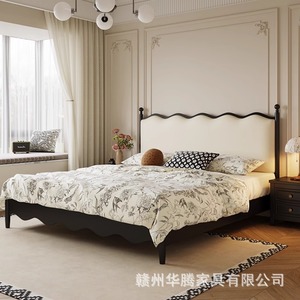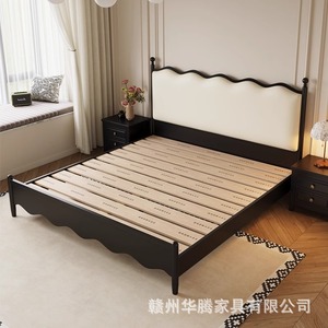 法式复古实木床家用现代简约主卧高端大气双人床中古风轻奢黑色床