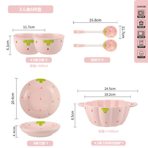 ストロベリーの新しいネット有名人の家庭用かわいい食器セットクリエイティブ高価値野菜プレートライスボウルとディッシュセット
