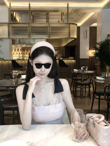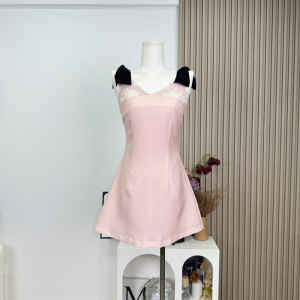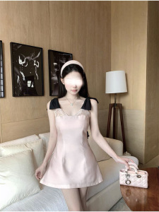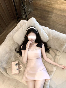kubiliv【Sweetheart Bunny】スイートリボンサスペンダーレースパッチワークウエストショートワンピース