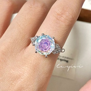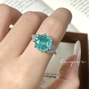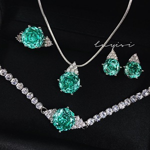 ライトラグジュアリー八角ミレニアムローズカットパライバペンダントネックレスブルーリングイヤリンググラデーションカラージェムセット女性用