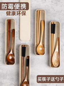 箸とスプーンセット 木製一人用携帯食器3点セット 子供・学生用持ち帰り用収納ボックス