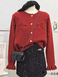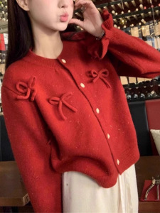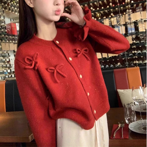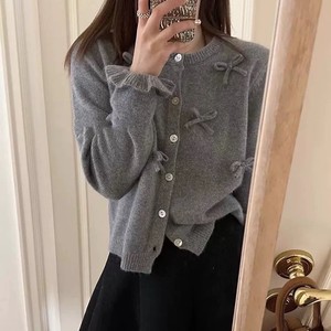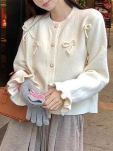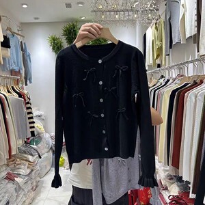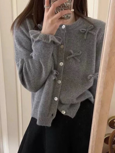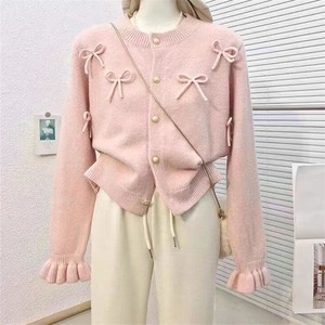 韓国デザインのリボンベルスリーブセータージャケット女性のための 2025 春の新しいルーズで甘いニットカーディガン