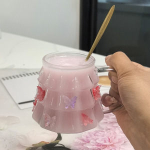 ホームフェアリーカップガラスコーヒーカップ透明ハンドルマグ高ホウケイ酸ホームオフィスミルクカップ