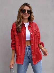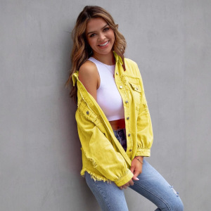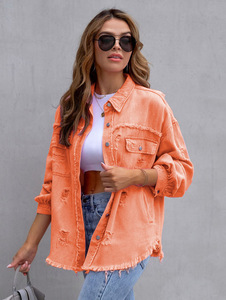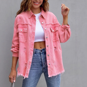 クロスボーダー 2025 ヨーロッパとアメリカのデニムジャケット女性の無地ルーズジャケットリッピングファッション長袖女性のデニムシャツ
